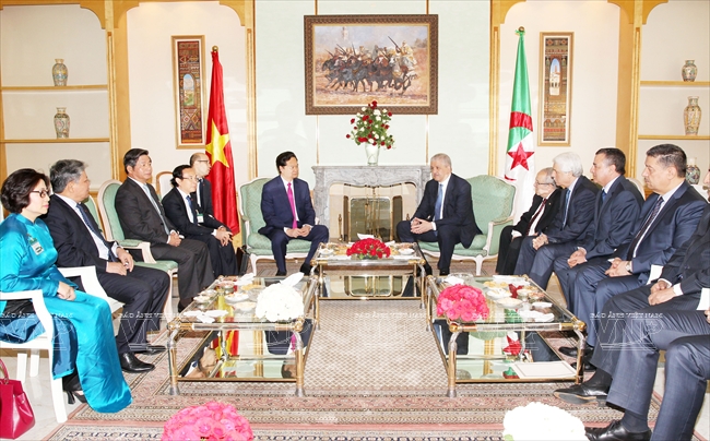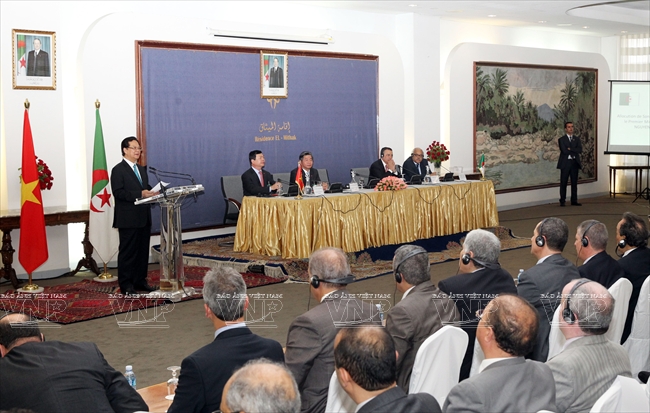In Algeria, the two sides set a target of increasing the two-way trade to over one billion dollars from the current level of 250 million dollars. The two sides also committed to support cooperation on oil and gas and pledged to consider cooperation on agriculture through sending Vietnamese agricultural experts and engineers to Algeria.