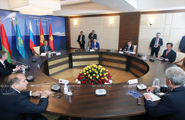 In Kazakhstan, Prime Minister Nguyen Tan Dung and Prime Ministers of EAEU’s member countries, namely Russia, Armenia, Belarus, Kazakhstan and Kyrgyzstan, participated in the official signing ceremony of the Free Trade Agreement (FTA) between Vietnam and the Eurasian Economic Union. This was the second FTA that Vietnam signed in May, following a similar agreement with the Republic of Korea, and is one of the new FTAs that Vietnam has worked towards with important partners.