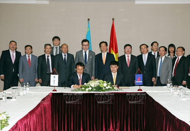 Prime Minister Nguyen Tan Dung witnesses the signing of a cooperation agreement on the exploration, exploitation and provision of oil and gas services between Vietnam National Oil and Gas Group (PetroVietnam) and KazTransGas Company (affiliated to Kazakhstan’s KazMunaiGaz Group).