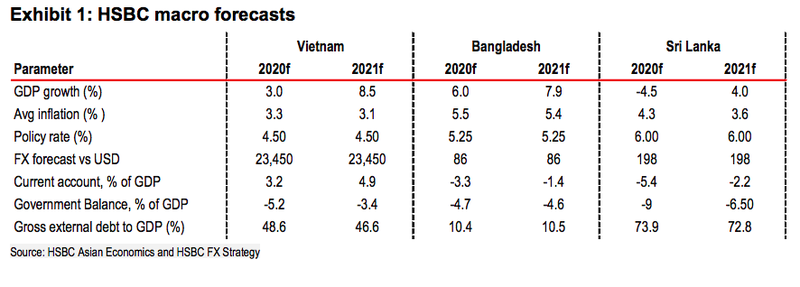 HSBC economists forecast Vietnam's GDP to expand 3% in 2020, making it the only ASEAN country they expect to have positive growth this year.