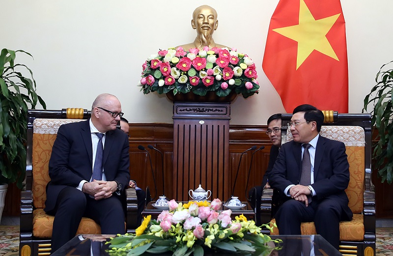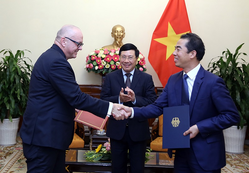 German Federal Foreign Office Andreas Michaelis and Vietnam's Deputy Prime Minister, Foreign Minister Pham Binh Minh on Dec 5. Photo: VGP