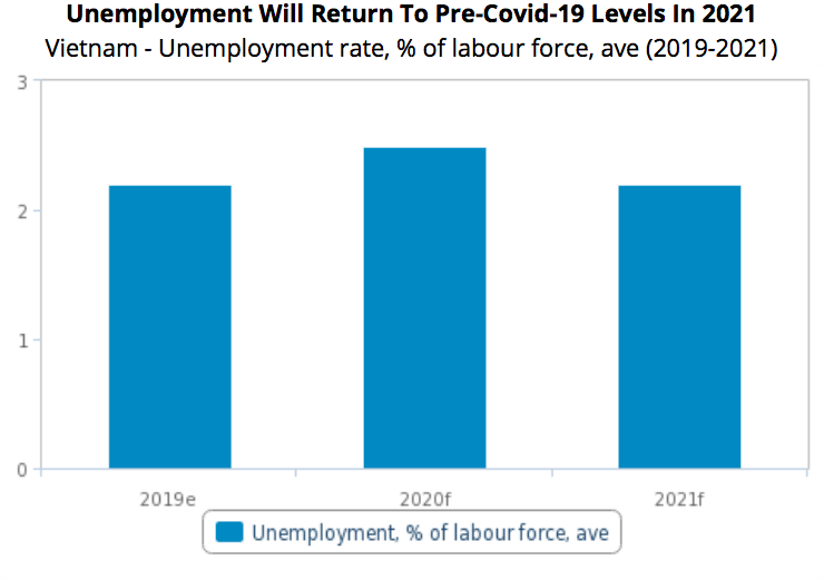 Vietnam’s unemployment rate is forecast to return to a pre-Covid-19 level of 2.2% year-on-year in 2021, although Fitch Solutions did note that the definition of those formally employed may have changed. People returning to work but working fewer hours than pre-Covid-19, or taking lower paying jobs, will put downside pressure on disposable incomes.