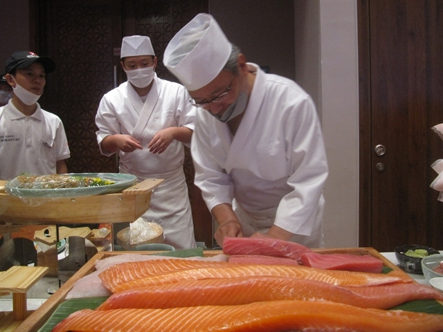 | A Japanese Chef introduces Tuna sushi dish at Japanese Mikazuki Đà Nẵng Spa and Resort. The annual Việt Nam-Japan Cultural Exchange has been held in the city since 2014. — VNS Photo Công Thành |