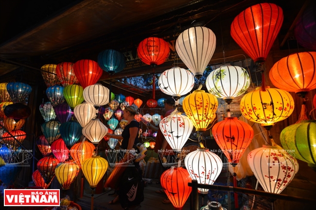 Hoi An’s traditional lanterns decorated with Japan’s famous cherry blossom pattern.