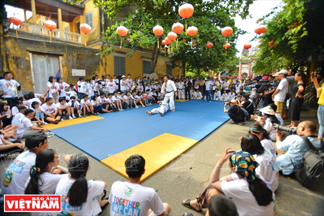 Japanese judo champion Nishiyama Masashi exchanges Judo techniques with young Vietnamese on the streets of Hoi An.
