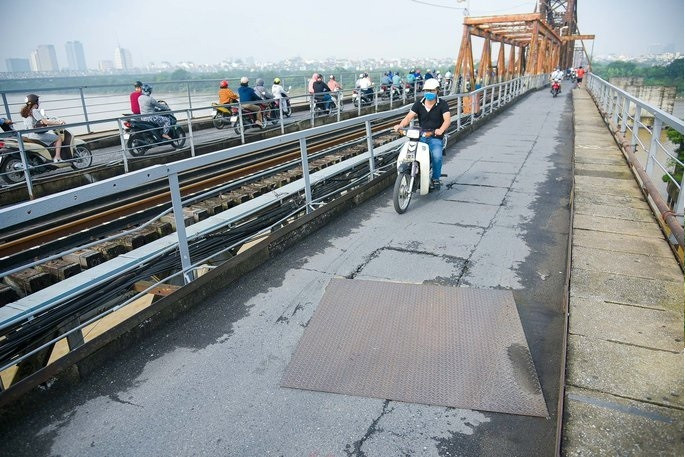 The Long Bien bridge crossing the Red River sits on one of three key routes of the railway industry — Hanoi-Dong Dang, Lang Son-Hanoi-Haiphong and Hanoi-Lao Cai. Each day, tens of thousands of vehicles, trains, motorcycles and bicycles use the bridge, leading to its deterioration.