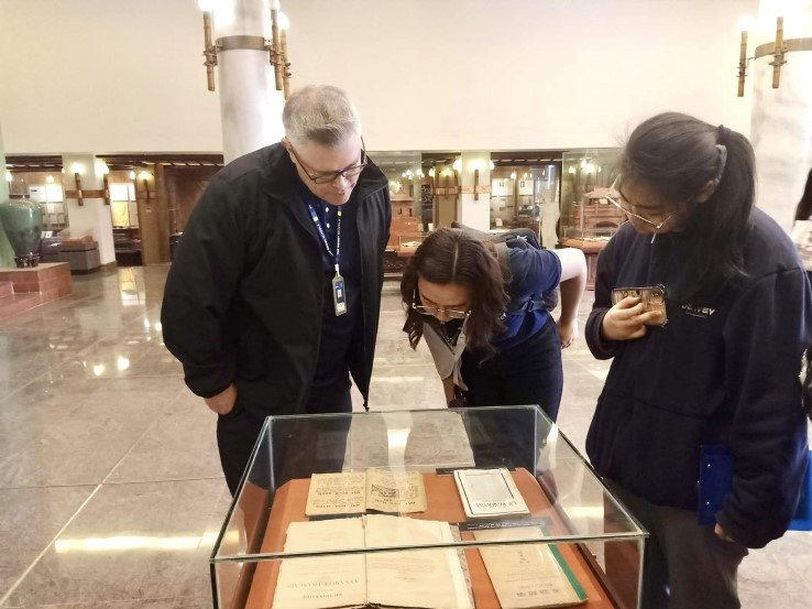 | Students learn about literature history at the museum. |