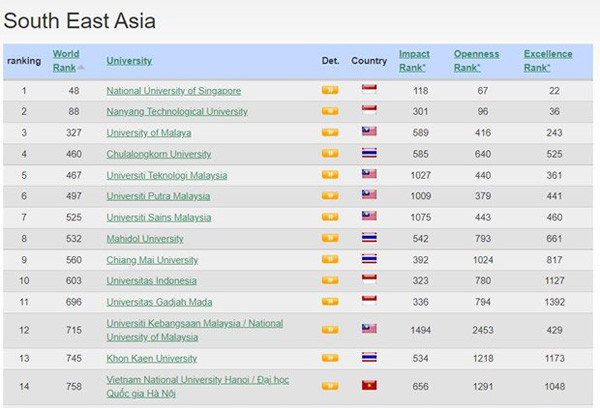 With the new position, the VNU stood 183rd in Asia and 14th in Southeast Asia, according to the rankings issued by the Cybermetrics Lab of the Spanish National Research Council on August 7.
