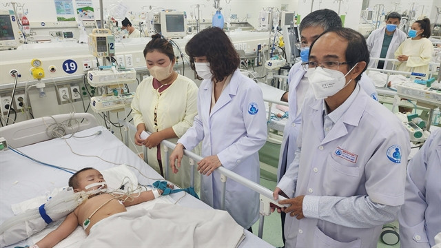 | Deputy Minister of Health Nguyễn Thị Liên Hương inspects the treatment of a hand, foot and mouth disease patient at Children's Hospital 1 in Hồ Chí Minh City last June. VNA/VNS Photo |