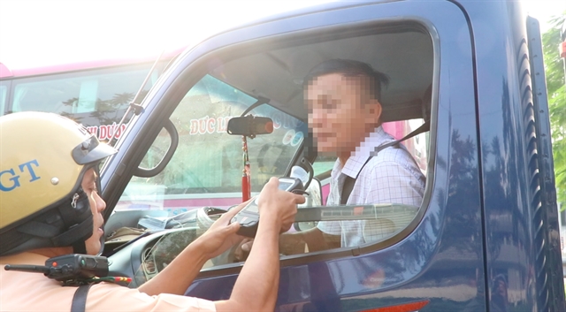 | The HCM City traffic police checked drivers' alcohol level to make sure they were driving without using alcohol on January 11. — Photo www.sggp.org.vn |