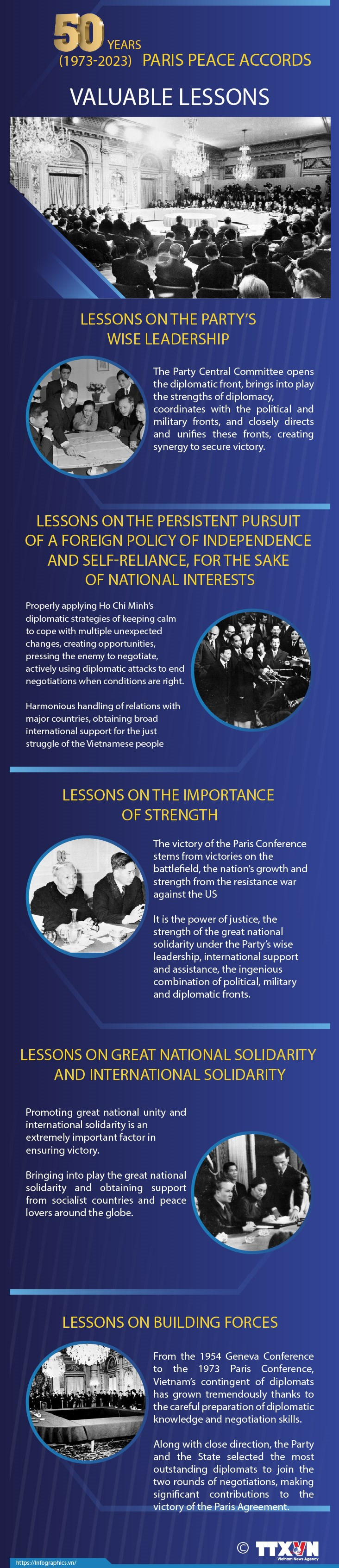 Lessons drawn from the Paris Peace Accords negotiations, signing and implementation have maintained their values, even in the Party and the State’s foreign policy during the present cause of reform, national development and defence.