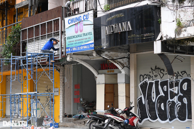 A man repairs his house at Le Loi Street