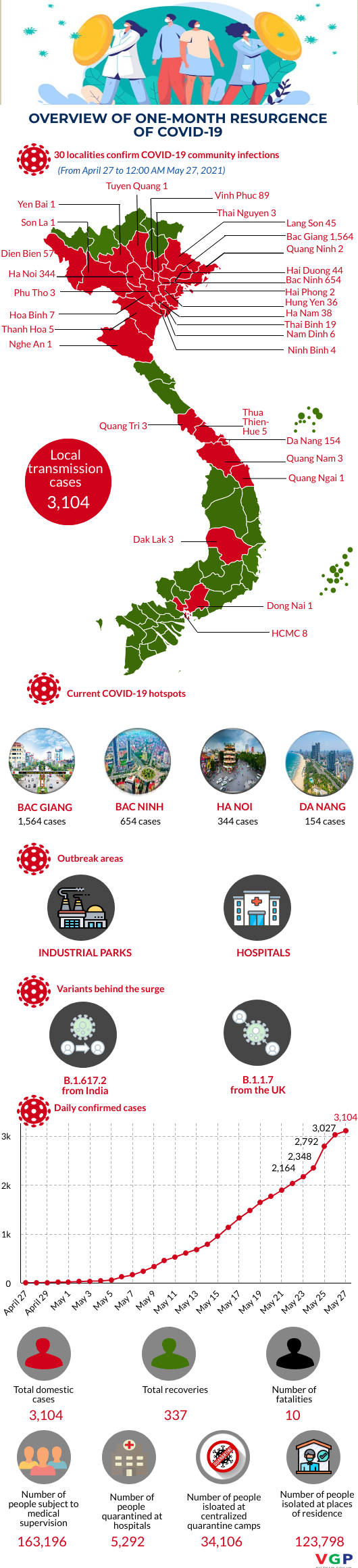 As many as 3,051 domestic cases have been logged since the nation was hit by the fourth COVID-19 wave on April 27. Another case was added to the imported infection tally on May 27 morning, raising the imported count of the outbreak to 1,490.