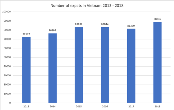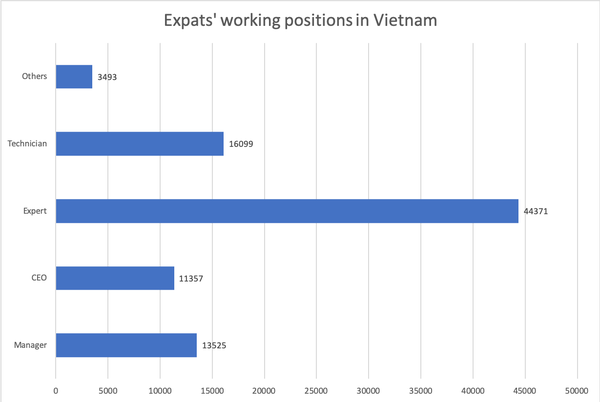 The number of expats in Vietnam rose from 72,172 in 2013 to 88,845 in 2018, the majority of whom are holding key positions, including manager, CEO and technician.