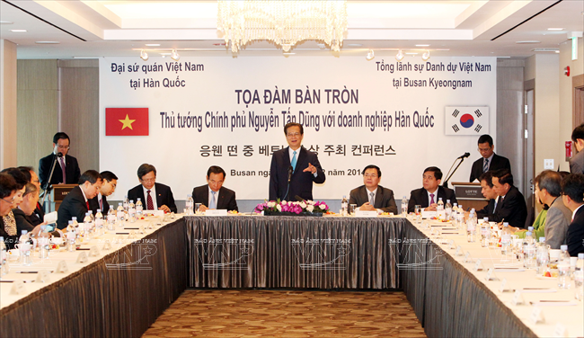 During the visit, the Prime Minister had talks with RoK President Park Geun-hye, received the Mayor of Busan Suh Byung-soo, visited the Busan-Chinhae Free Economic Zone , chaired a dialogue with RoK Businessmen and received many South Korean groups and some Vietnam-RoK Friendship Organisations.
