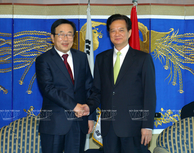 Prime Minister Nguyen Tan Dung receives the Mayor of Busan Suh Byung-soo.