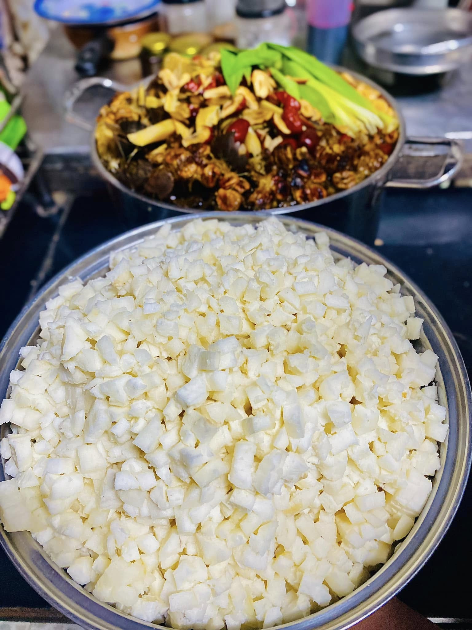 Freshly cleaned and peeled mã thầy is ready for desserts or soups.