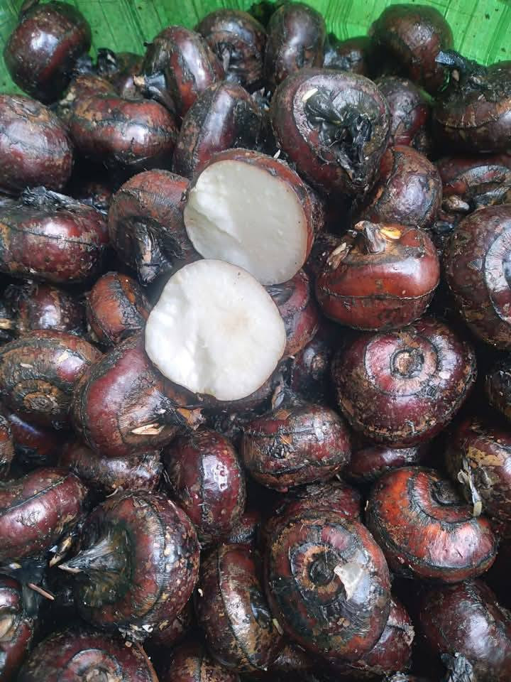 With its dark brown skin and crisp white flesh, mã thầy resembles a small onion in size. When eaten fresh, it delivers a mildly sweet, juicy crunch, much like jicama, but with its own subtle aroma.