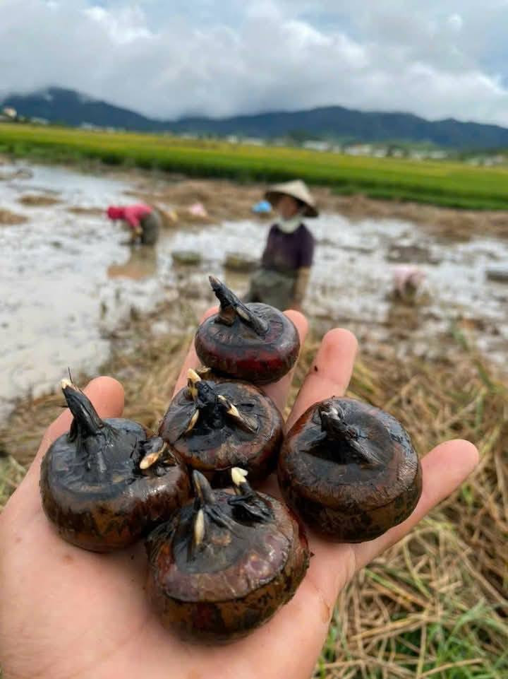 Lan Vu, a merchant in Cao Lanh City (Dong Thap), said mã thầy is typically harvested from November through the following few months, depending on the region. Once pulled from the mud, the bulbs are washed to reveal their distinct brown-black skin.