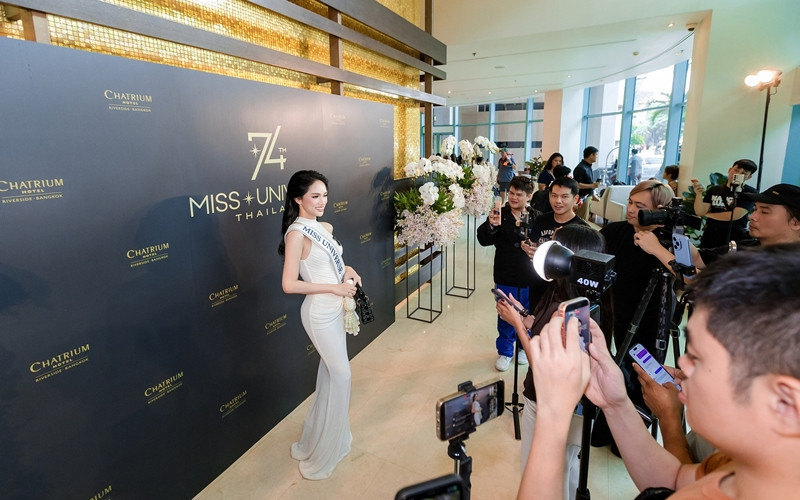 At a media meet-and-greet, Huong Giang received significant attention from international reporters. She warmly engaged with journalists from Thailand, the Philippines, and other countries, posing for photos and initiating friendly conversations.
