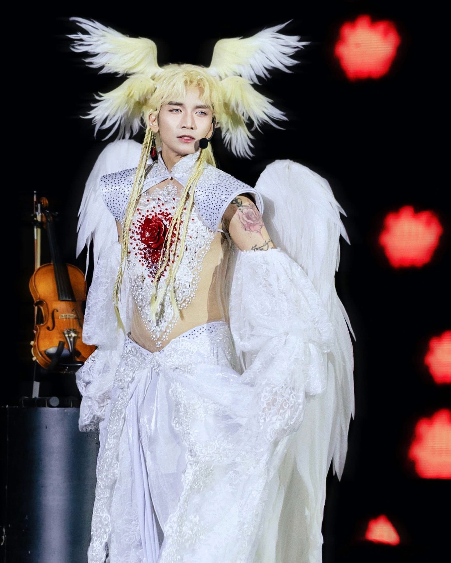Artists like Do Phu Qui and Cong Duong appear in crop tops and ruffled, deep-cut tops during performances, while Dao Ba Loc has long been a pioneer of this look, sporting flashy, elegant outfits despite public controversy. Duc Phuc has also embraced styles inspired by Chinese idols, moving away from his previously minimalistic fashion.