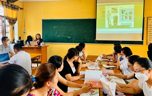 | Training officials and teachers in Bắc Giang Province on the effective use of 7th and 10th-grade textbooks for the academic year 2022-2023. VNA/VNS Photo |