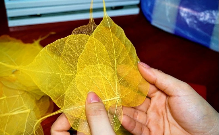 Realizing that the market has a high demand for unique products, Sinh began to study the line of paintings made from Bodhi leaves. "I chose the Bodhi leaf to make an art piece because it is very beautiful and has a very meaningful heart shape," Sinh revealed.
