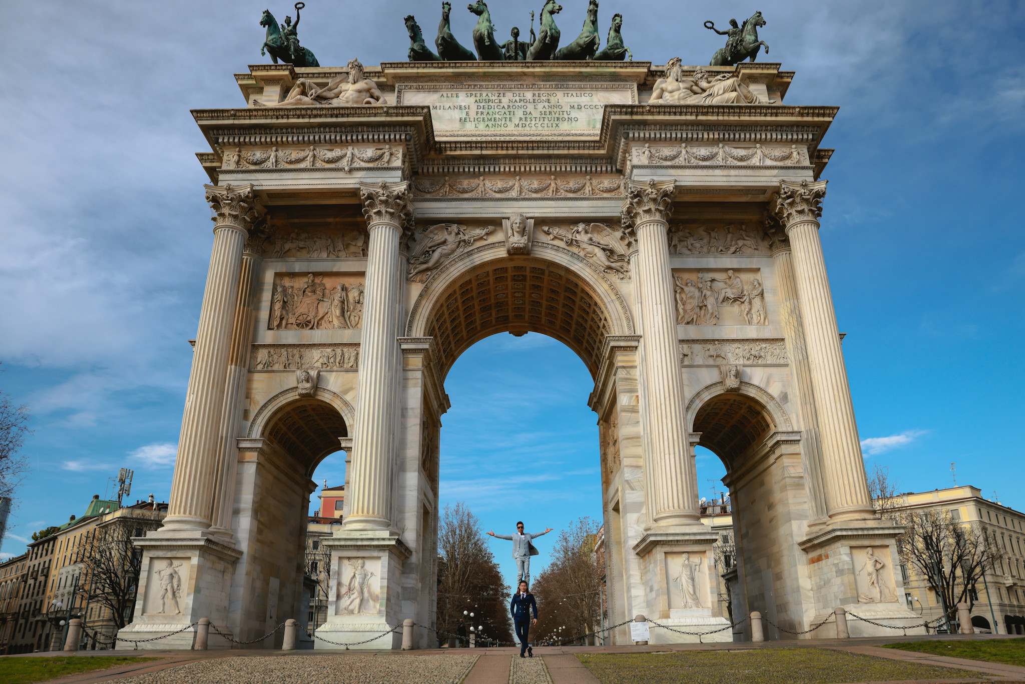The Cathedral of Milan is the world's 4th largest Roman Catholic church built in 1386. It took 500 years to fully complete the construction.The two circus performers in suits went for a walk. After that, the Giang brothers moved to the ancient Giureconsulti building near Piazza Del Duomo Square.Quoc Co - Quoc Nghiep at the ancient road of Dante leading to Sforzesco castle. The photo shoot took six hours.The artists visited the 1,500-year-old Sforzesco Castle and performed their circus act of the past 20 years.The last destination was the 164-year-old Arco Della Pace, built during the Napoleonic period.The two brothers have gone to Italy many times to travel, perform and set Guinness World Records. After this trip, they will officially end their elite career, and will no longer try to set new world records.