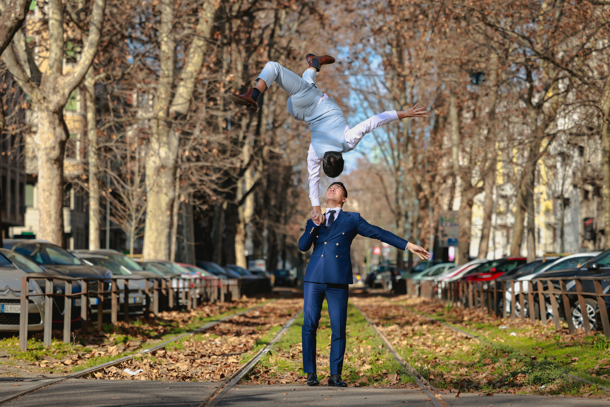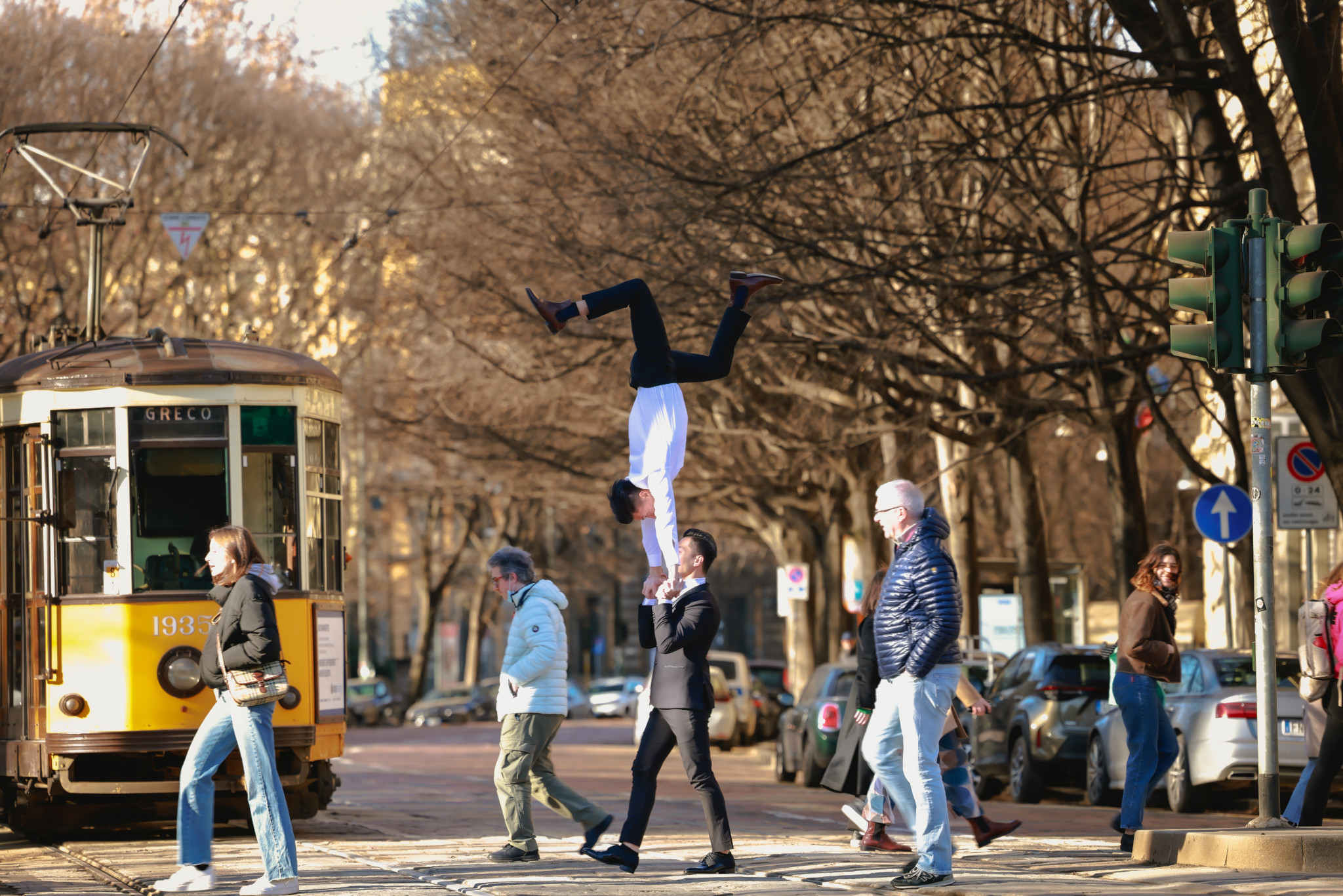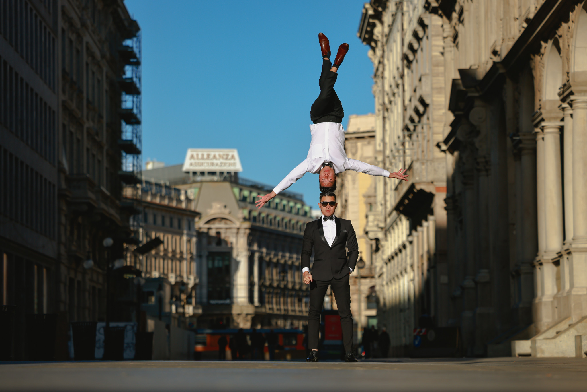 After setting a Guinness World Record, Vietnamese acrobats Quoc Co and Quoc Nghiep took a photo tour of Milan, Italy in combination with their circus performances.