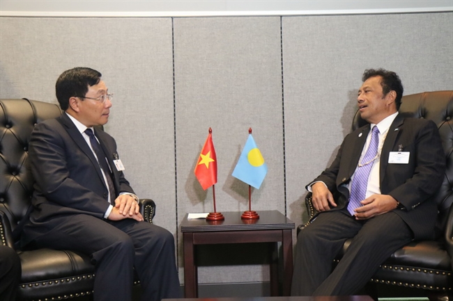 On the sidelines of the 73rd session of the UN General Assembly, Deputy Prime Minister and Foreign Minister Pham Binh Minh had bilateral meetings with the President of Palau, Foreign Ministers of Australia, Ukraine, Slovakia, Slovenia, Uganda, and Ecuador, and the US Deputy Secretary of State. He also chaired a meeting with over 100 senior officials and diplomats of other countries to call for their support for Vietnam’s candidacy for non-permanent membership of the UN Security Council in the 2020 - 2021 tenure.