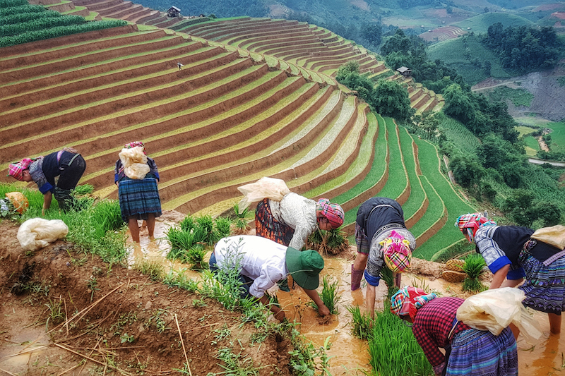 In May and June, when terraced fields in the northwest region of Vietnam enter pouring-water season, ethnic groups begin transplanting rice seedlings, the most important time period for the crop.