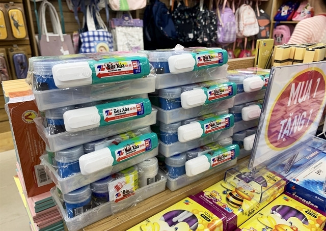 | Vietnamese school items on shelves at a bookstore in HCM City. The Ministry of Industry and Trade has proposed to the Government the development of a circular on criteria for 'Made-in-Việt Nam' products. – VNA/VNS Photo |