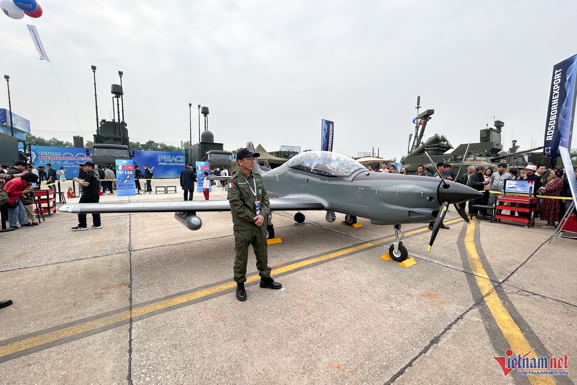 The Flying Legend TP-150, showcased at the event, is designed for basic military training and patrol missions. It draws inspiration from Brazil’s Tucano 312 light attack aircraft.