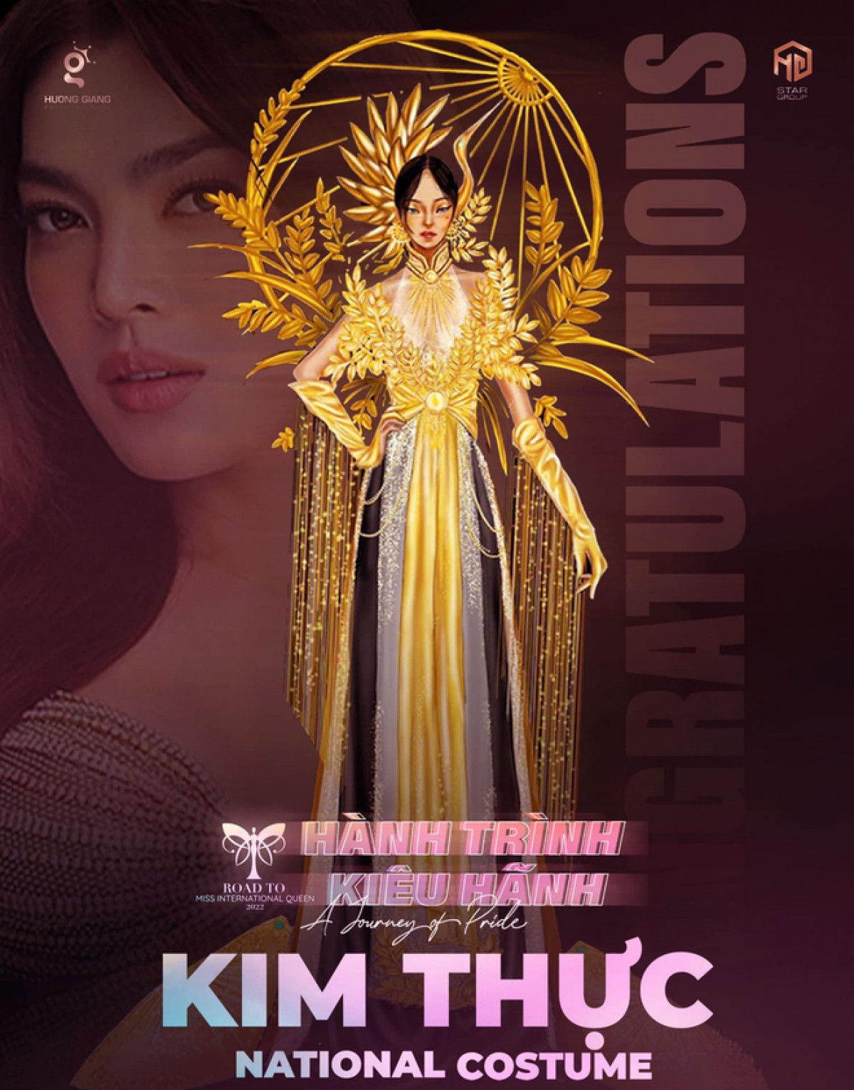The outfit has been designed by Nguyen Minh Triet and draws inspiration from the motifs of rice, storks, cranes, sun, and Ao Dai, the nation’s traditional long dress.