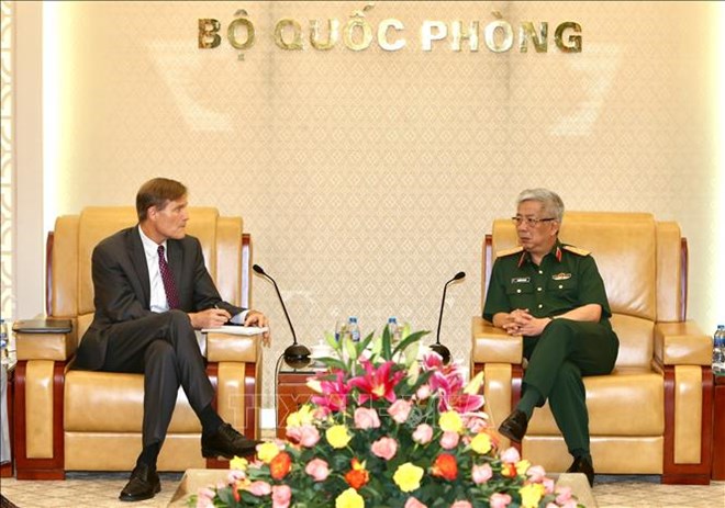 Deputy Defence Minister Sen. Lieut. Gen. Nguyen Chi Vinh (right) and Michael Greene, USAID’s MissionDirectorfor Vietnam