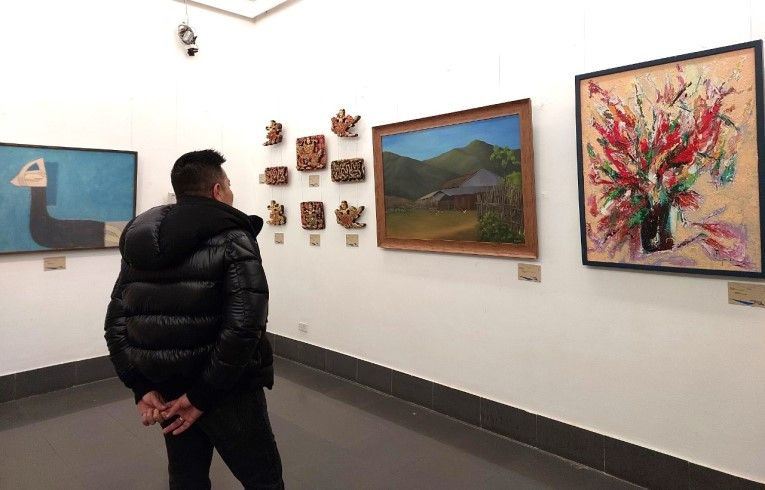 The exhibition features more than 90 artworks by 20 artists, including paintings and statues, created using many materials such as oil paint, gouache, lacquer, do (poonah) paper, acrylic, Huong Canh ceramics, Phu Lang ceramics, and others.