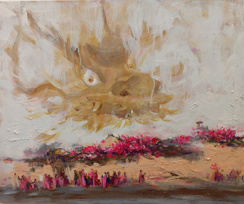 In addition to dragon-inspired works, the exhibition also presents many works of art with the theme of love for nature and people such as Morning Sun by artist Viet Anh, Listen to the Colors by artist Bui Thanh Thuy, Dance by artist Phuong Binh, Northwest by artist Nguyen Thanh Quang, and Eastern Girl by artist Nguyen Minh.