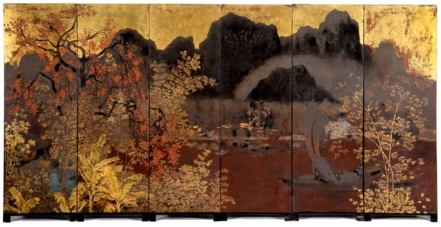 The auction's highlight is "Les Rapides de Cho Bo", a six-panel lacquer screen with gold highlights, painted in 1942 by QuốcLộc. The artwork is estimated to fetch 400,000 euros (US$396,000), the highest price of the lot.