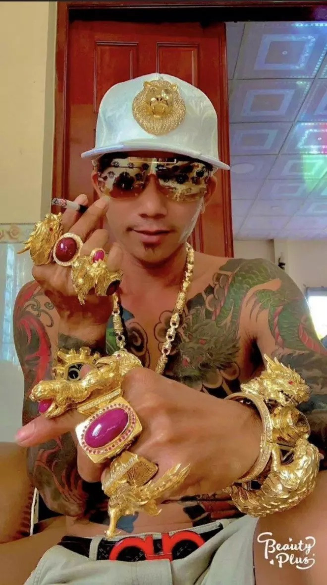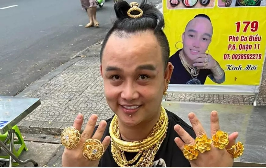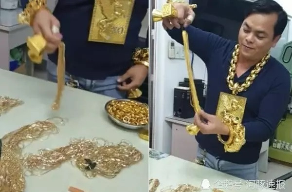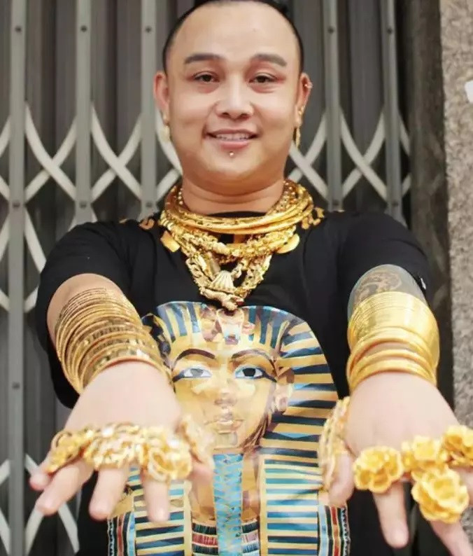 A few years ago, a man named Tran Ngoc Phuc appeared on Chinese news sites for the same hobby. Photo: China PressIt was reported that Phuc XO usually wore over 13kg of gold. Photo: China PressHowever, he was later arrested for being involved in a drug-use case. He then admitted that all the gold he had been wearing was fake. Photo: Lao Dong