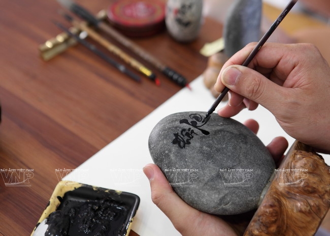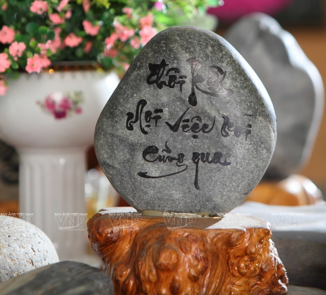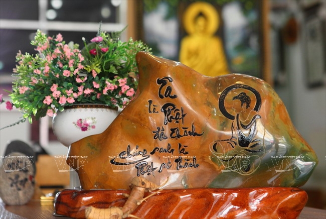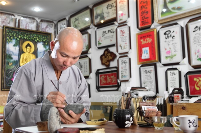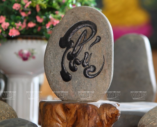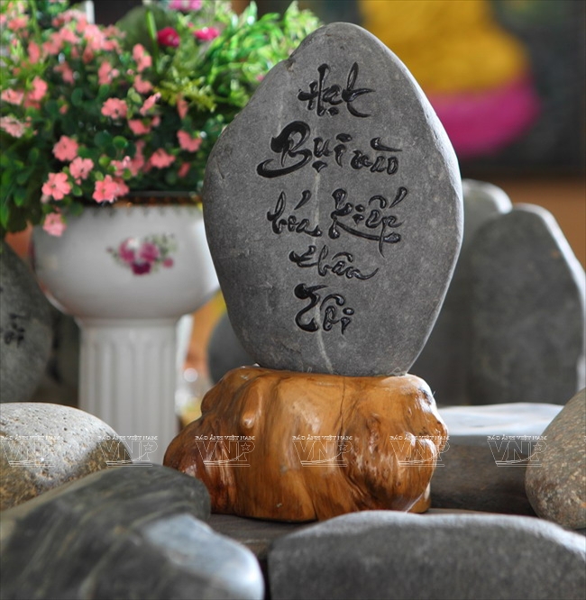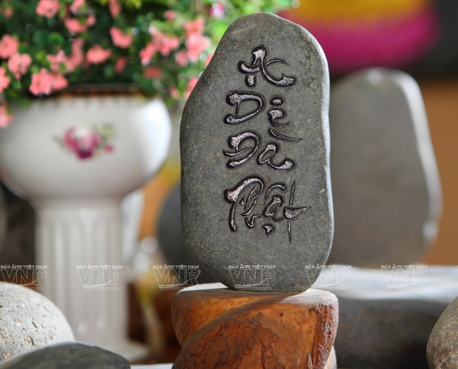 Over the past ten years, Venerable Thich Giac Thien has made thousands of stone calligraphic products and shown them in many places, including cultural events and exhibitions, both at home and abroad.