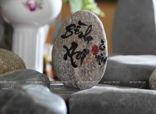 With skillful hands and the sensitive soul of a Buddhist monk, Venerable Thich GiacThien writes calligraphic Buddhist prayers in Vietnamese on pebbles, which turn out to become valuable art works with a noble humane outlook.