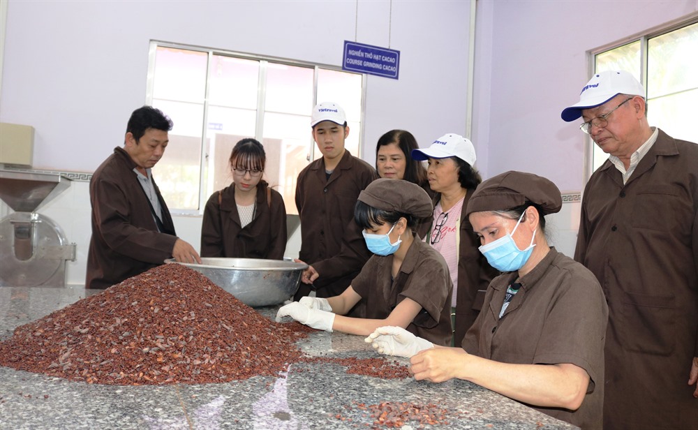 Tourists visits Kimmy’s chocolate factory in Tiền Giang Province’s Châu Thành District.