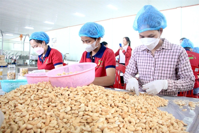 | Workers process cashew nuts for export at a plant in Bình Phước Province. VNA/VNS Photo |