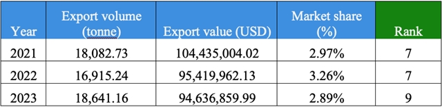 | Vietnamese cashew nut exports to the UK market during 2021 - 2023. Source: VINACAS/General Department of Customs |