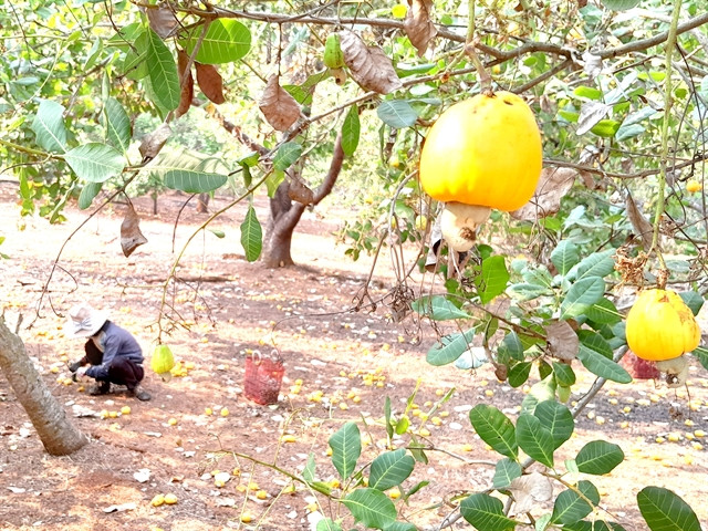| A farmer harvesting cashew in Bình Phước Province. — VNA/VNS Photo |