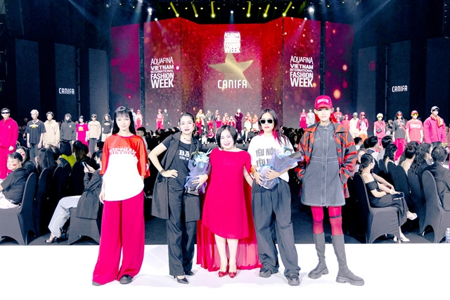 | PATRIOTIC CLOTHING: Vietnamese fashion brand Canifa’s collection 'Kết Nối Tự Hào' (Be Together for National Pride) features casual clothes in red with slogans to praise the country and call for patriotism among young people. Photo courtesy of Multimedia JSC |