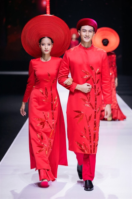 Designer Thuỷ Nguyễn introduced a collection of áo dài for couples at weddings.
