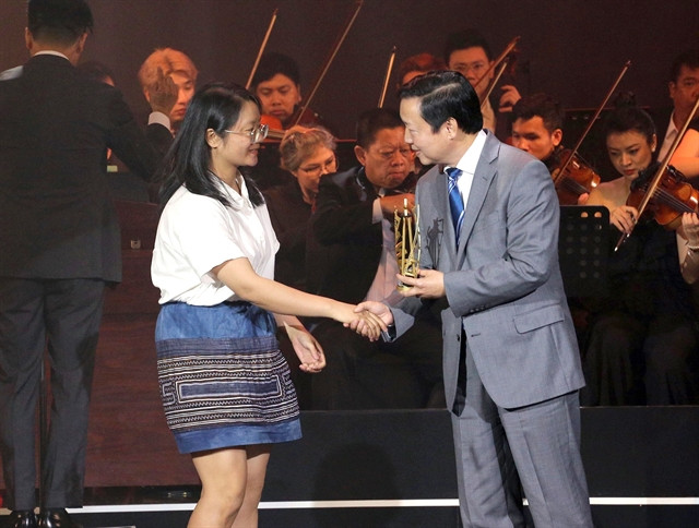 Deputy Prime Minister Trần Hồng Hà and People’s artist Như Quỳnh handed over the award to the director at the award ceremony at Đà Nẵng's Trưng Vương Theatre on Saturday.