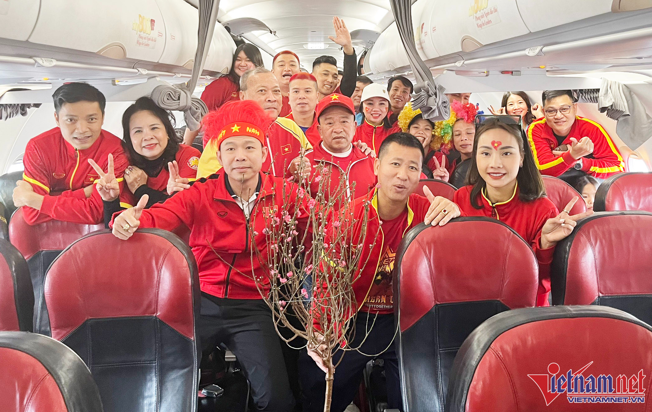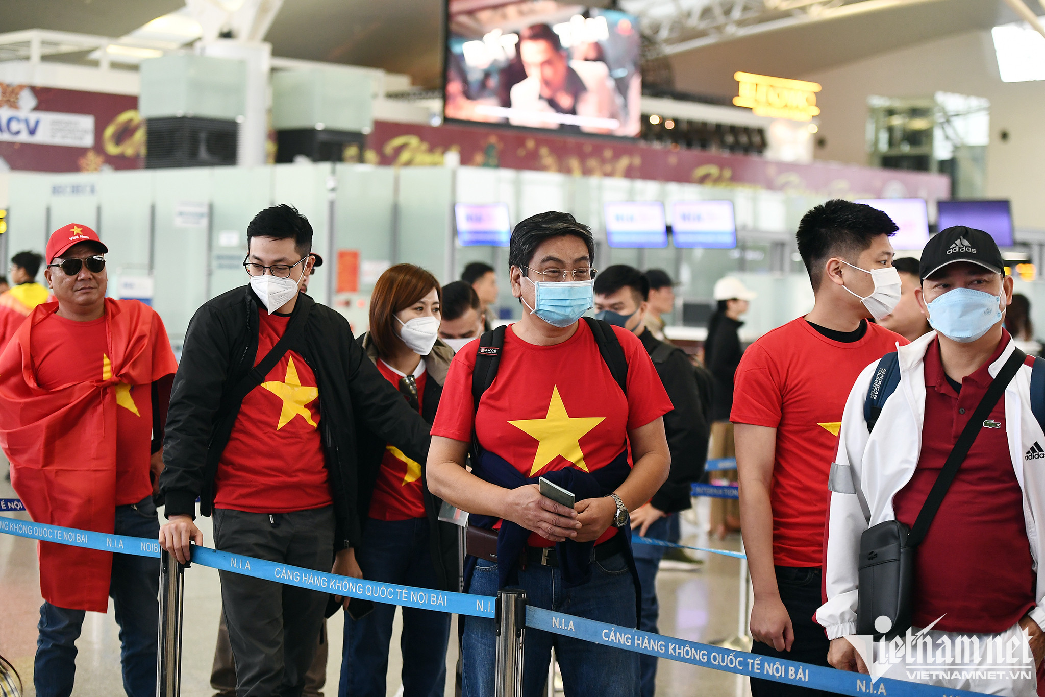 At 10 am on January 16, many passengers wearing T-shirts printed with the national flag appeared at Terminal T2 at the Noi Bai airport.