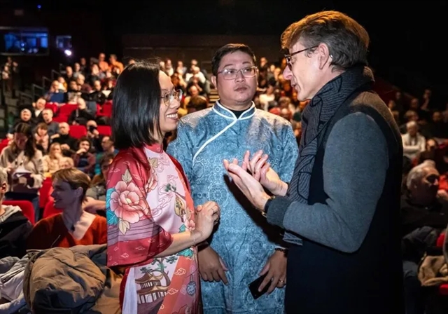 | Director Lưu Thành Luân (centre) is surprised by the more than 5 minutes of congratulatory applause from the international audience for his film 'Quỷ Cẩu'. — Photo vietnamnet.vn |